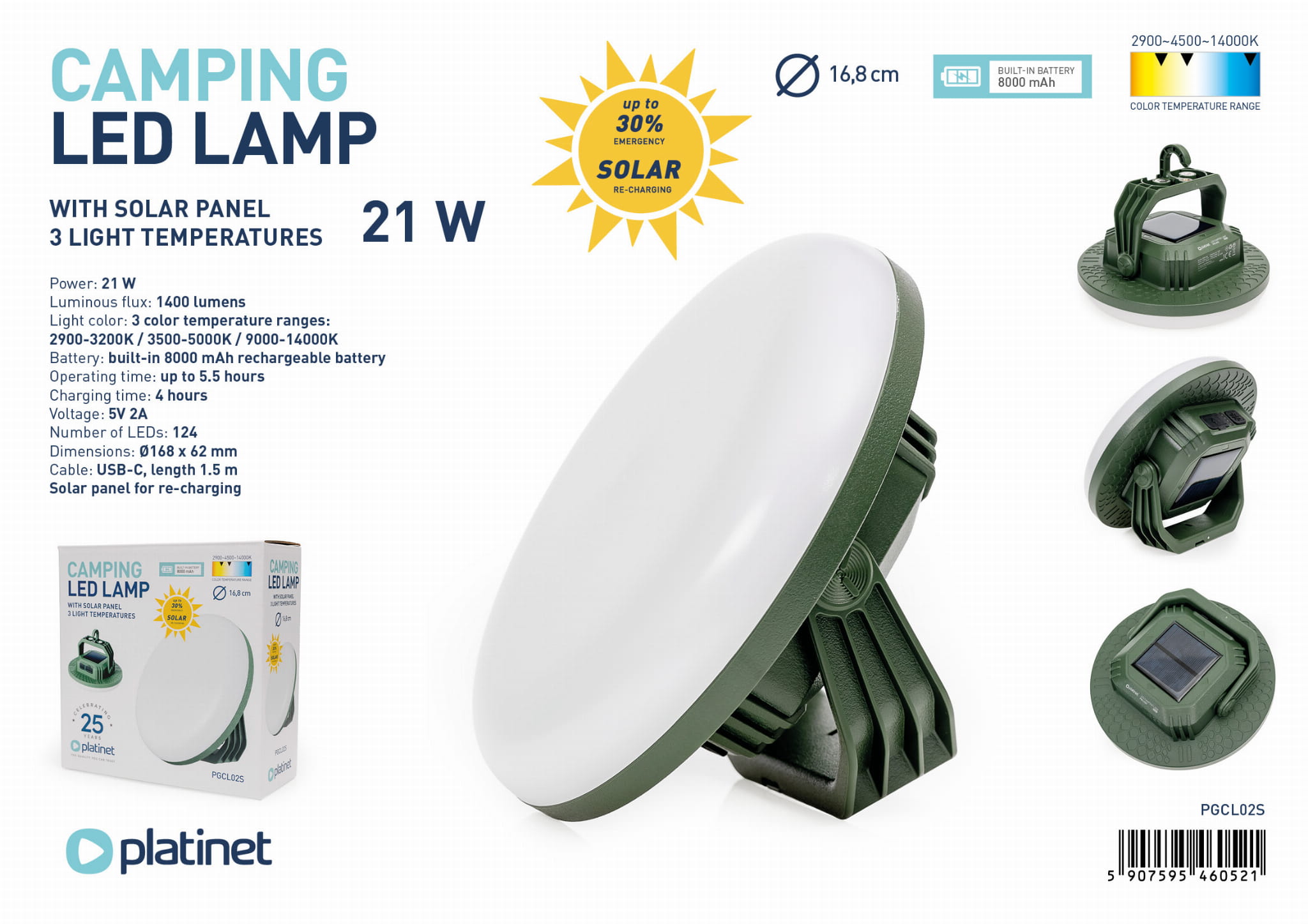 PLATINET CAMPING EMERGENCY LIGHT LED SOLAR 4X2000 MAH 5,5H 21W [46052]