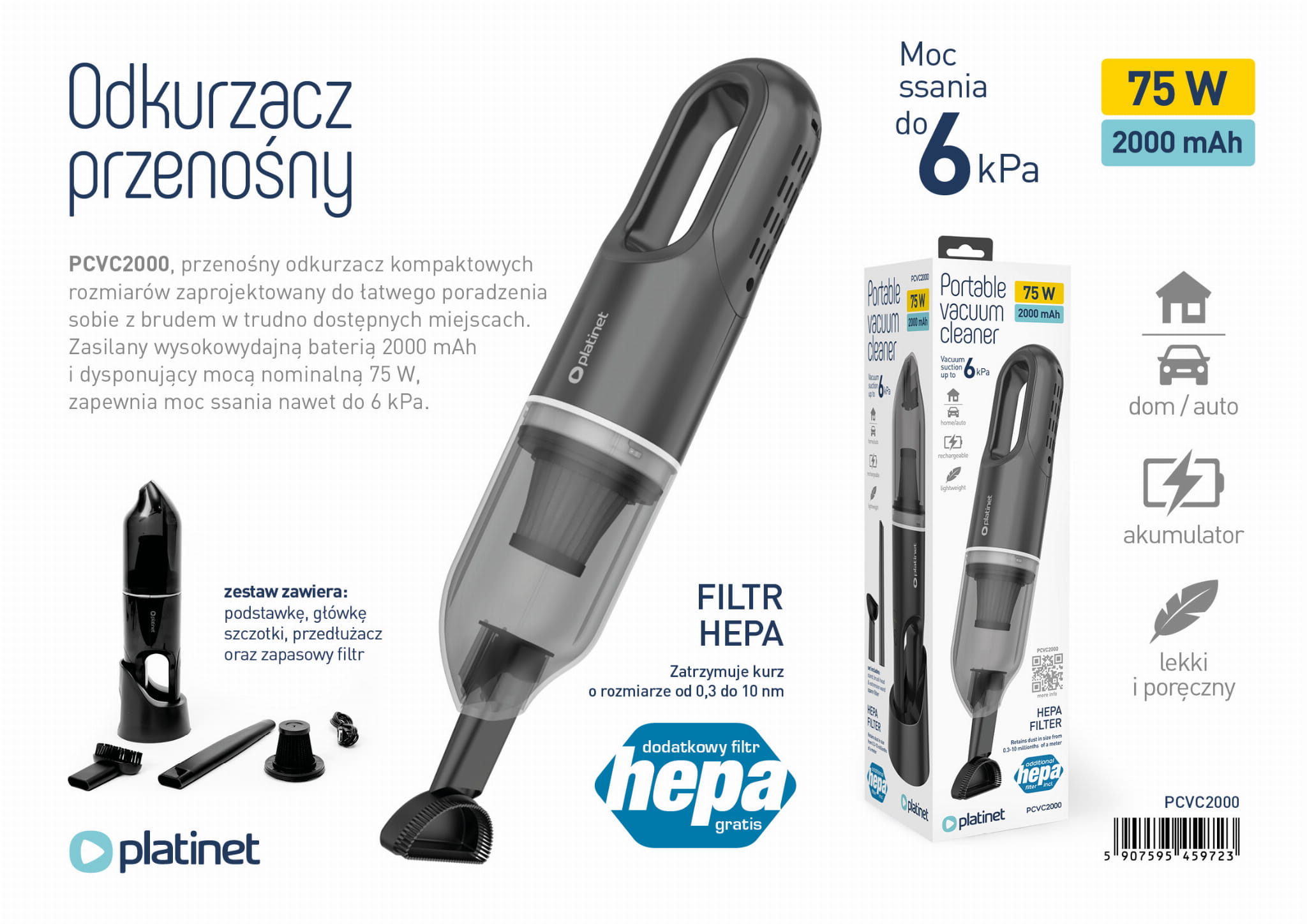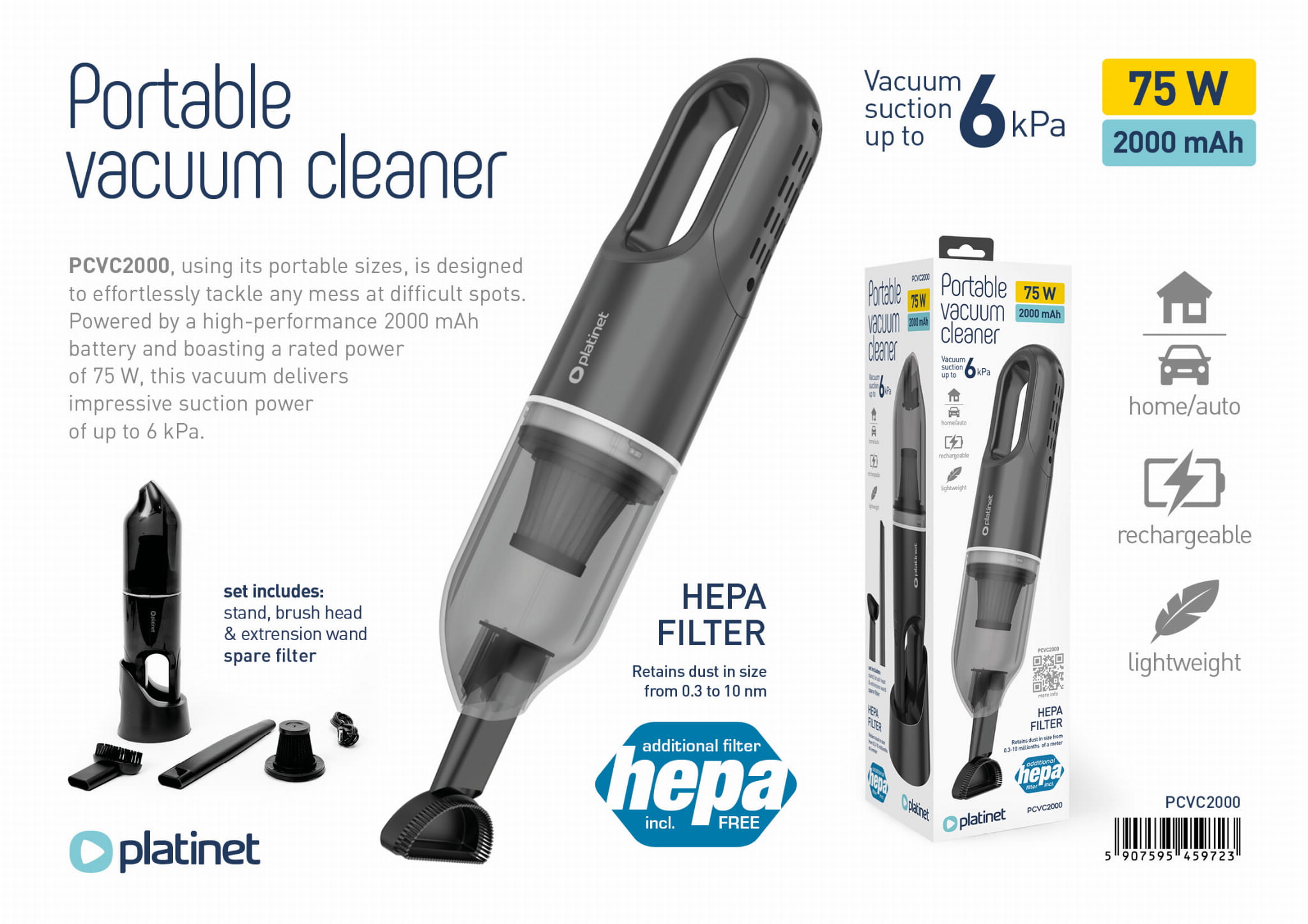 Thanks to the capacious dust container and Hepa filter, our vacuum cleaner effectively captures even the smallest impurities, ensuring clean and fresh air in your car.