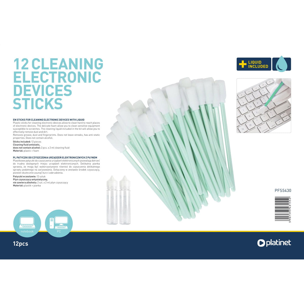 PLATINET CLEANING STICKS FOR DEVICES 12PCS + LIQUID 2x2ML [43155]