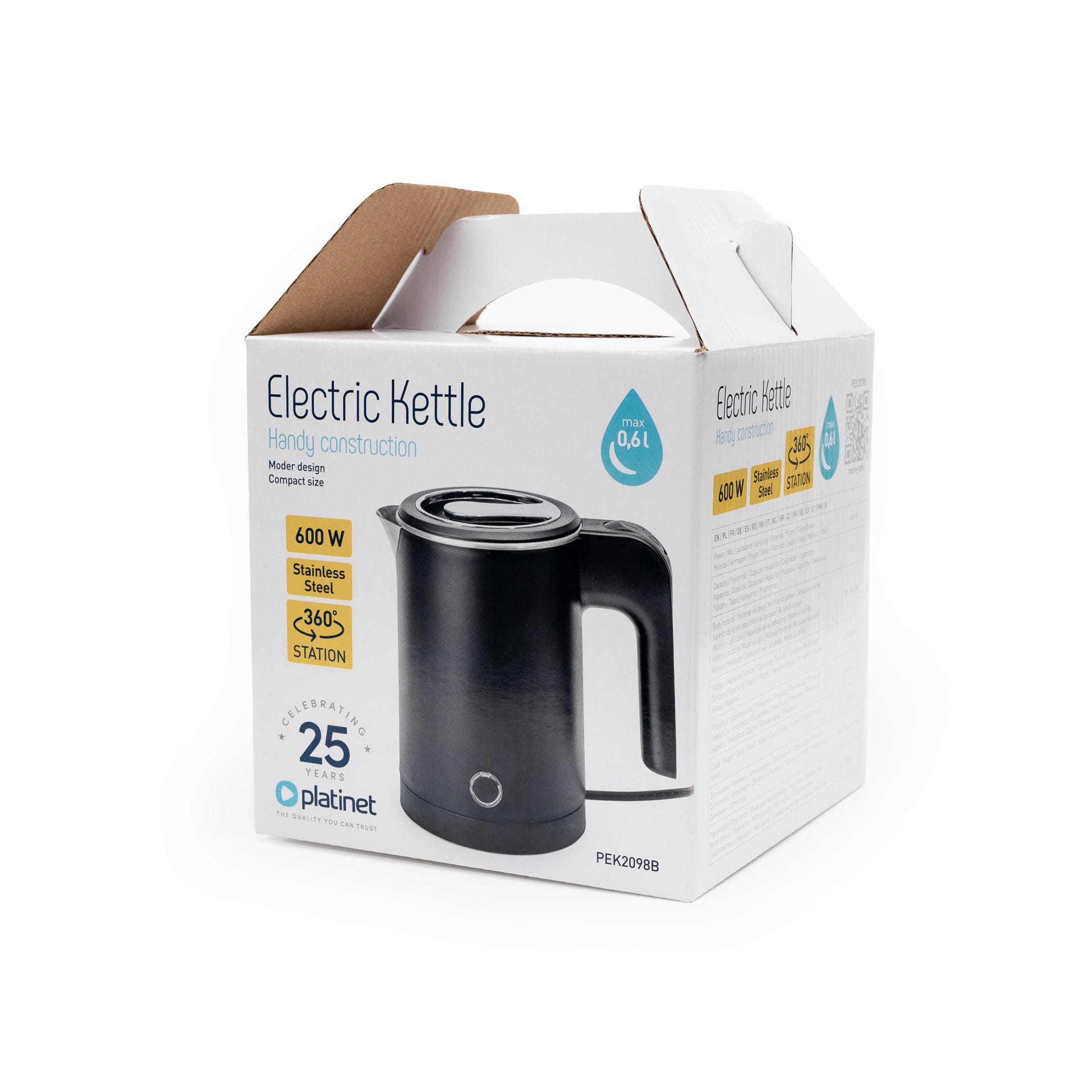 Discover a kettle that combines modern design with functionality ideal for everyday use. Thanks to its compact dimensions (165 × 163 × 105 mm) and lightweight design (550 g), it will work perfectly in a small kitchen, as well as in an office, summer house or student dormitory. The capacity of 0.6 liters is an ideal solution for one or two people – you will boil exactly as much water as you need.