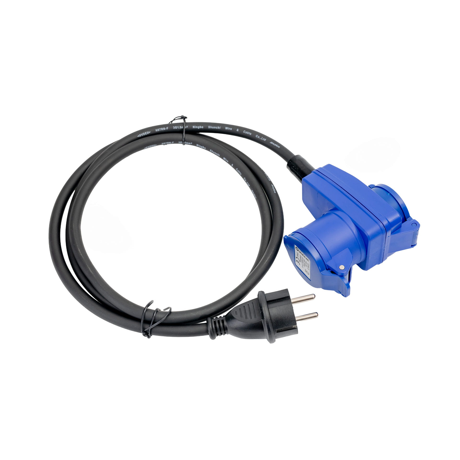 Thanks to its compact length and high resistance to weather conditions, it performs excellently in the field — allowing for safe connection of a caravan, camper, or camping equipment to a power source.