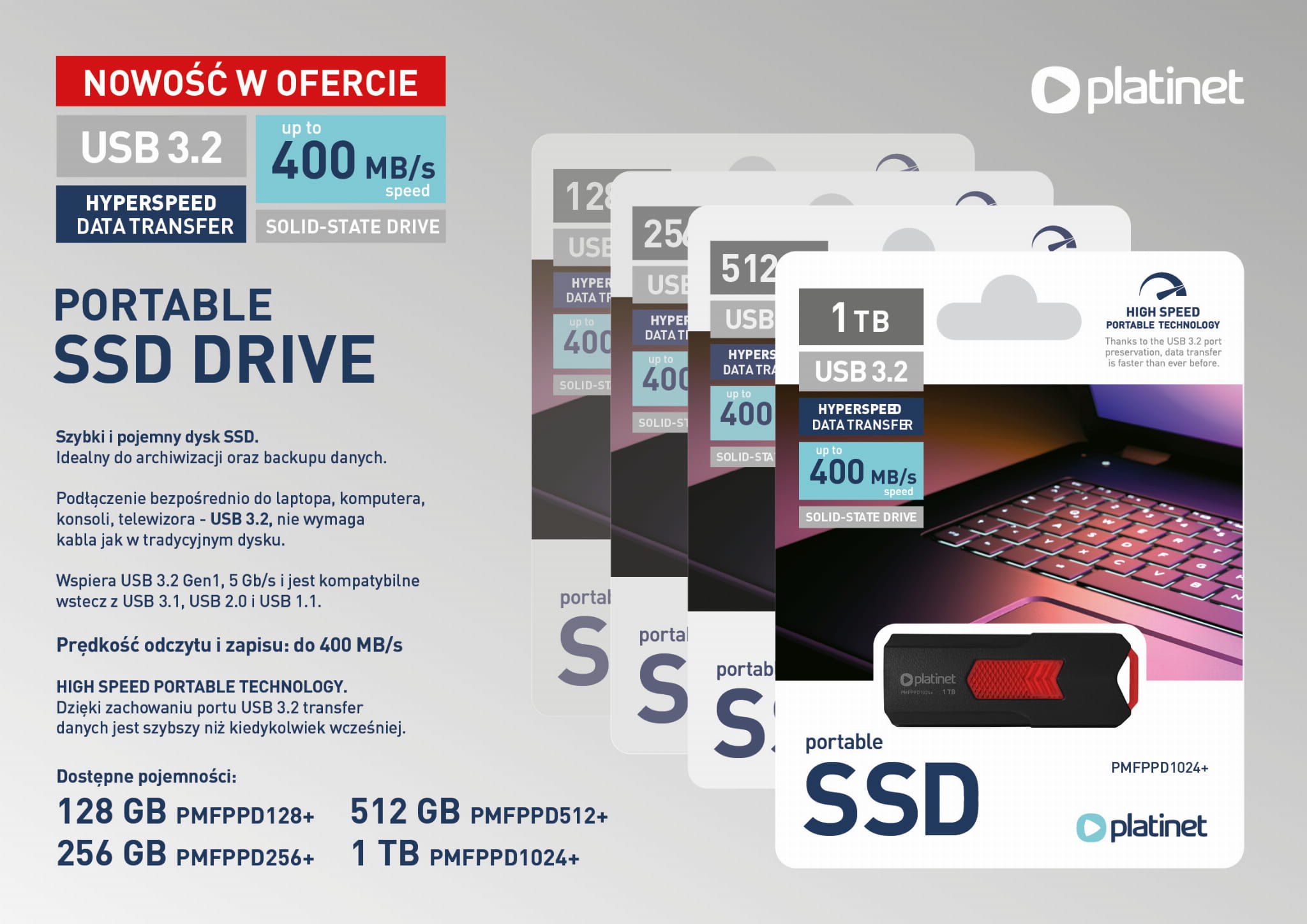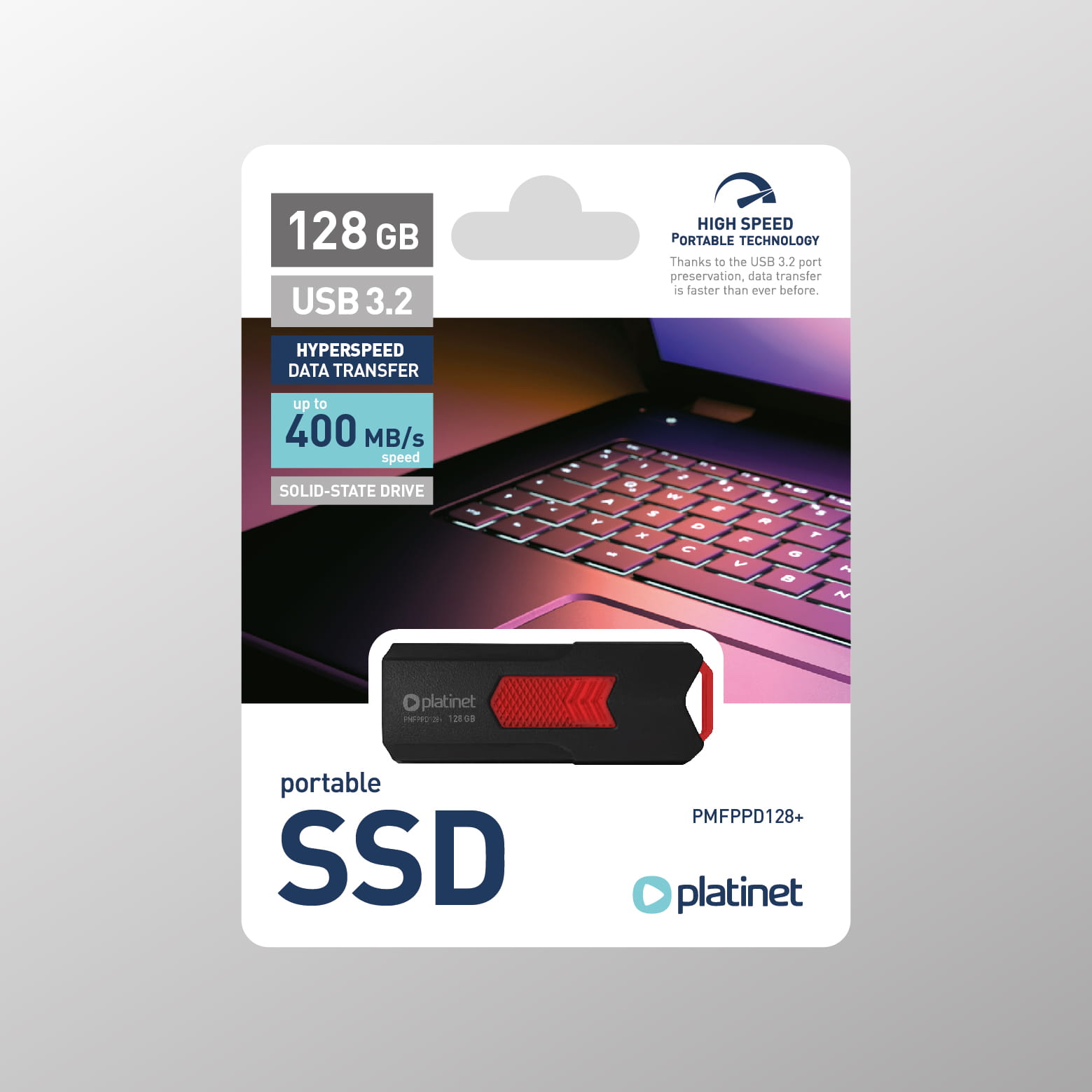 The Platinet SSD Drive portable USB drive with a capacity of 128 GB provides fast and stable data transfer thanks to USB 3.2 Gen 2 technology. It is an ideal solution for transferring and storing large files, such as movies, photos, or documents. Slider type casing Capacity: 128 GB - ample space for data storage. Interface: USB 3.2 Gen 2 - fast data transfer, up to 400 MB/s. Stable data transfer - a guarantee of reliability and speed when copying files. High Speed Portable technology - thanks to maintaining the USB 3.2 port, transfer speeds are greater than ever before. This compact and stylish SSD drive is the perfect choice for those who need large memory and fast data transfer in one device.