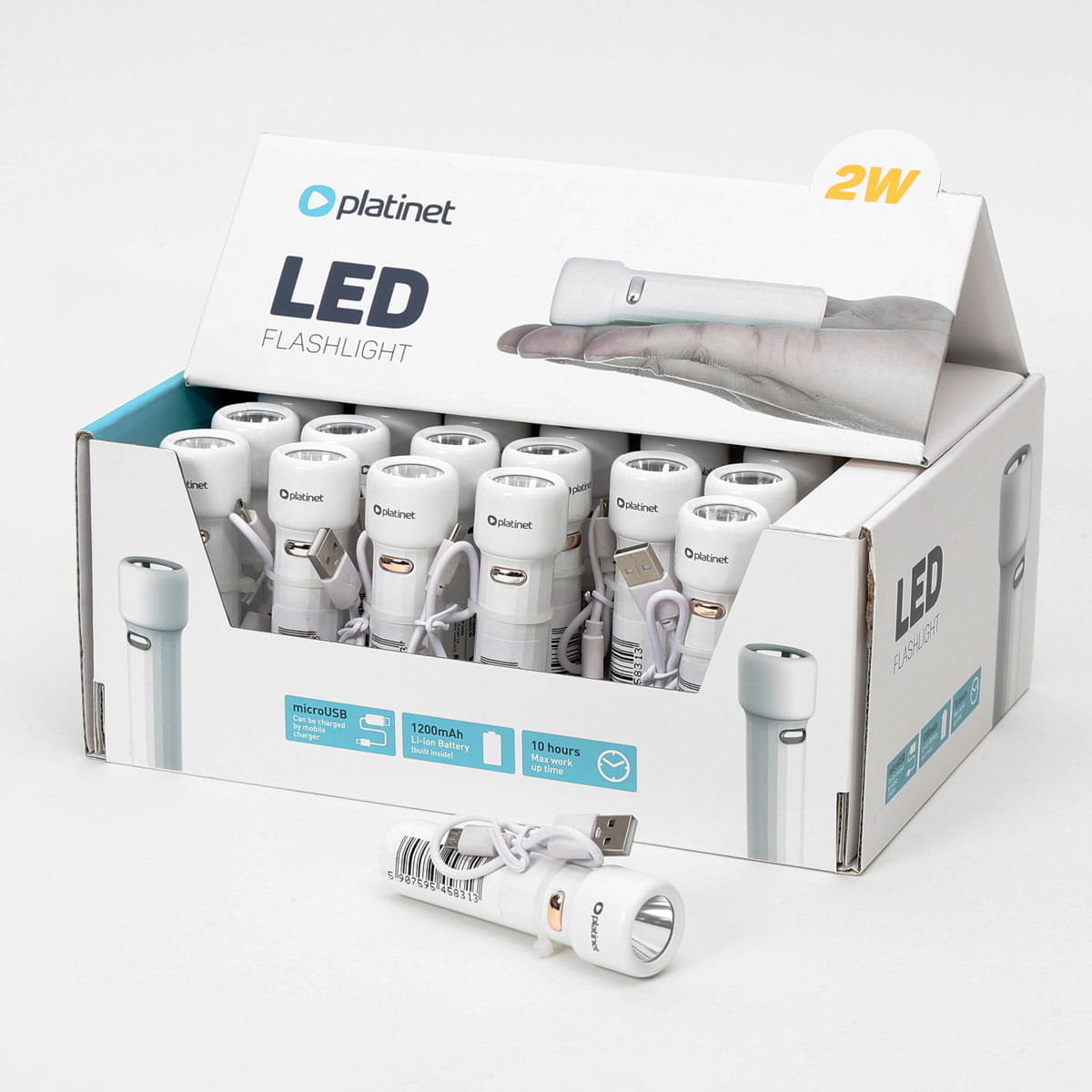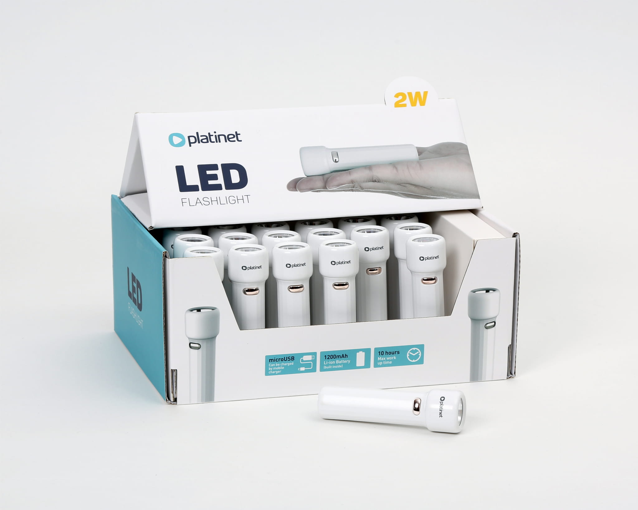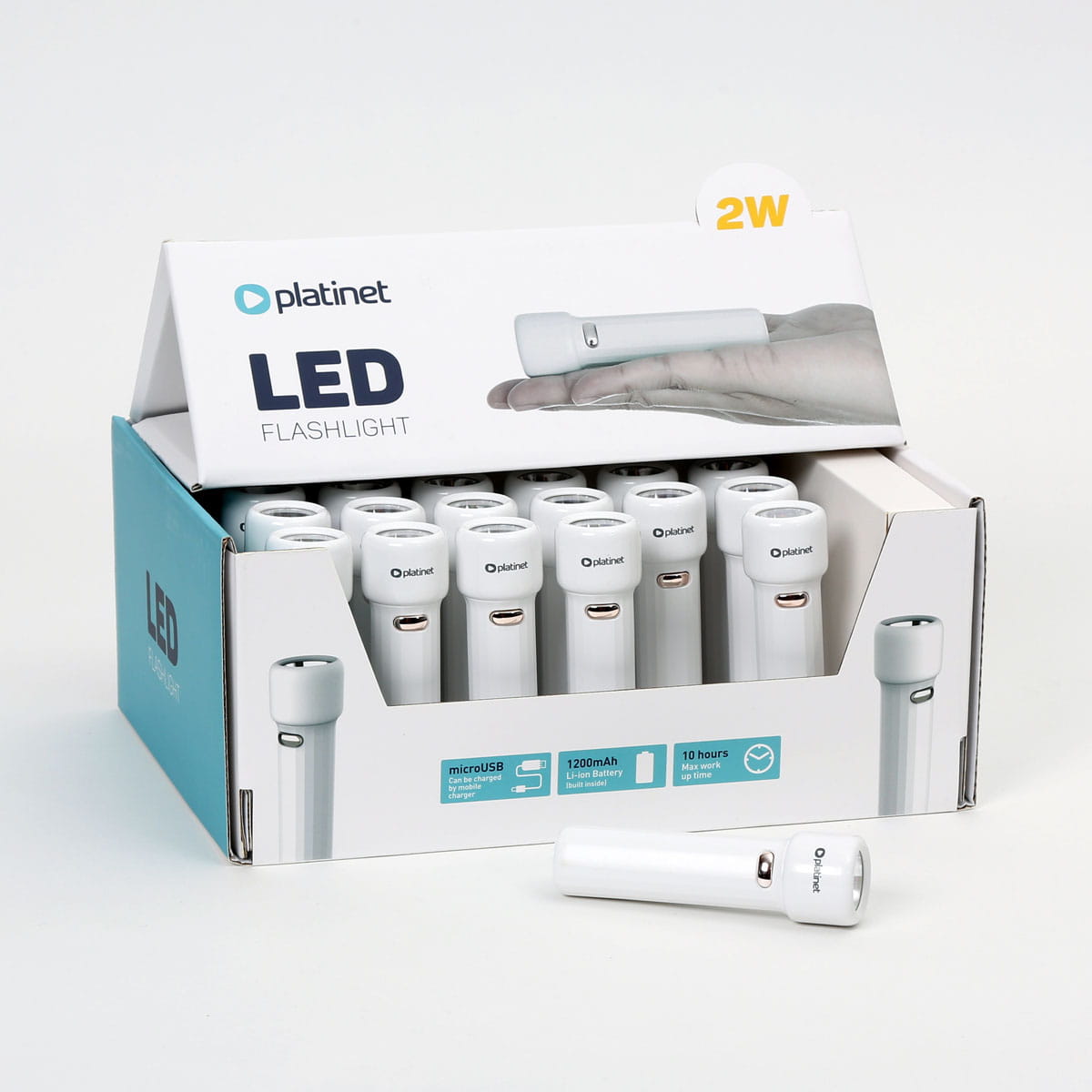 PLATINET TORCH FLASHLIGHT 2W 60LM WHITE 30PCS SET DISPLAY BOX [45769]